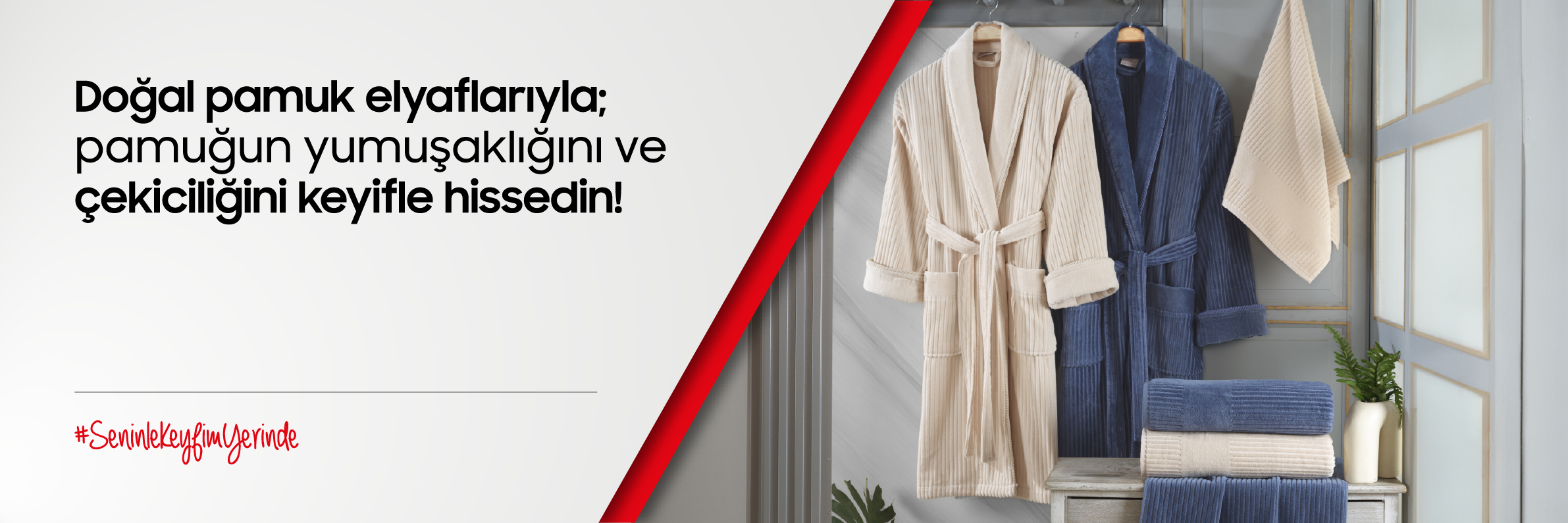 Vedra - Pamuklu Bornoz Seti - Krem Aqua